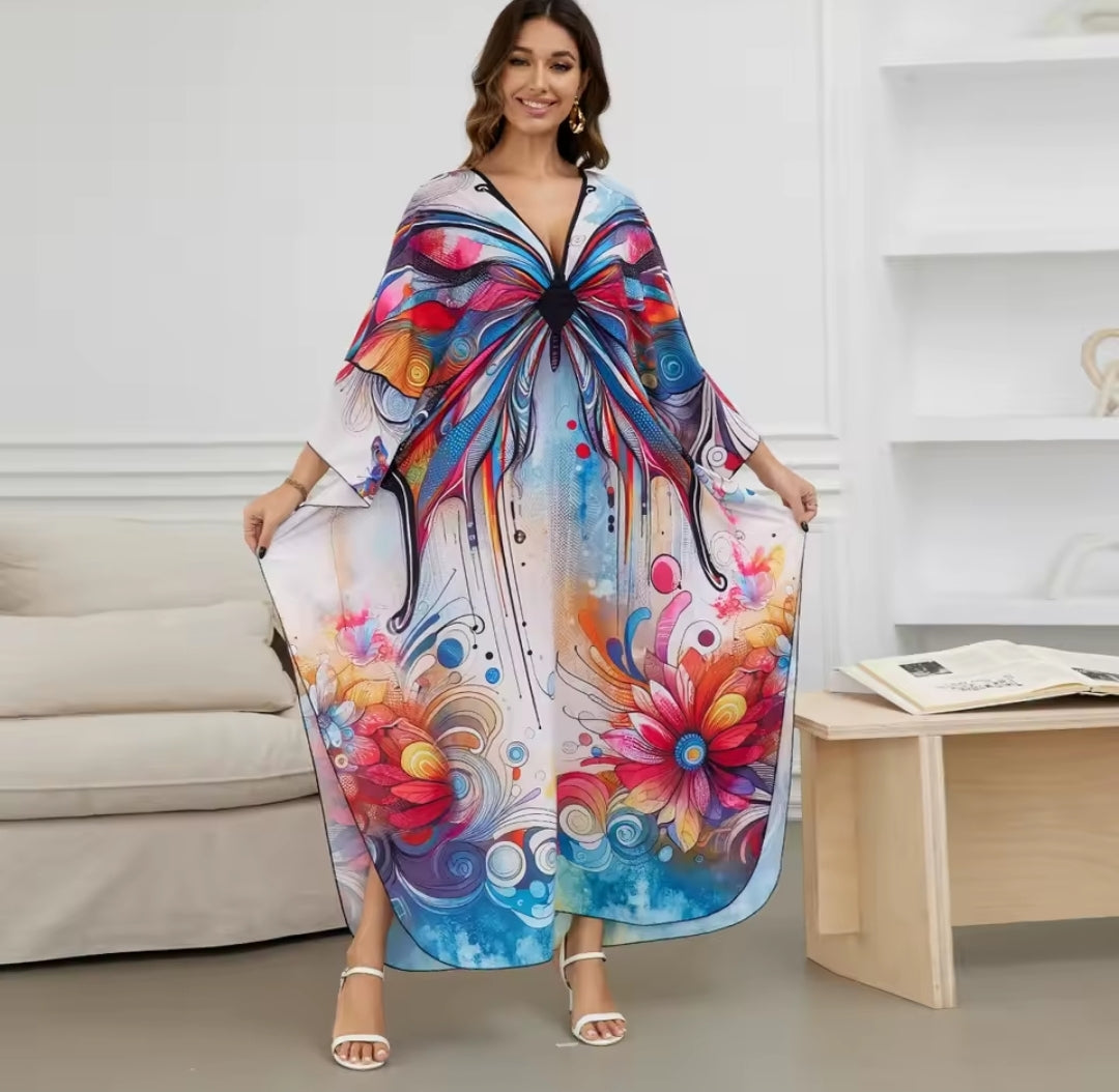 🏖️ Maxi Kaftan Beach Dresses for Women – Artistic Summer Robe with Bold Prints