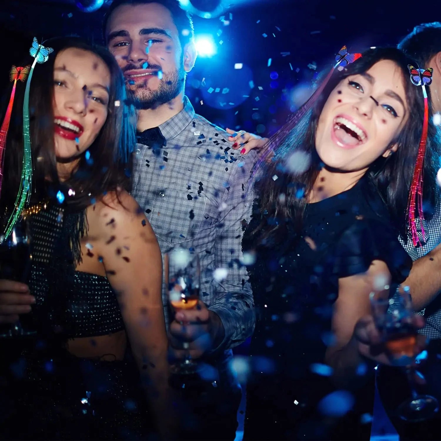 Add magic and colour to your celebrations with our LED Fiber Optic Hair Clips – the ultimate light-up accessory to make your hair glow with vibrant charm. These butterfly-inspired, luminous hair barrettes are designed to steal the spotlight at parties, weddings, concerts, birthdays, festivals, and more.