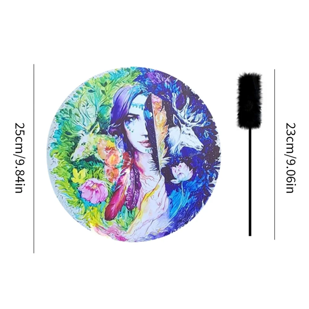 Features: 1. This drum will help harmonize human energy and is great for group and individual work. Drum activity increases with the cycle of the moon. 2. The shaman drum has a stable and consistent sound at any temperature. It is more comfortable and practical to hold and play. Play it as much as you like, and you can make a wonderful sound any time, anywhere. 3. It has a surprisingly deep and powerful sound, it sounds great, packs a lot of energy, and is great for healing and sound massage. 4. This is a beautiful piece of craftsmanship with a deep and rich sound that will leave shamanistic friends in awe. 5. This drum sound can help you expand your perception of the world, which gives you the opportunity to understand yourself better.